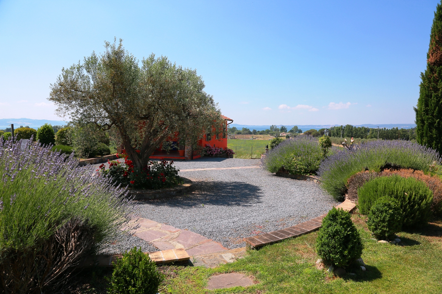 Die Lage besticht vor allem durch seinen traumhaften Panoramablick auf den See und die Nähe zu diesem. Zu dem Agriturismo gehört außerdem ein großes, sehr gepflegtes Seegrundstück mit privatem Sandstrand und schattigen Bäumen. Allen Gästen stehen dort Sonnenliegen zur Verfügung. Du erreichst das Seegrundstück bequem in nur 1 km Entfernung.