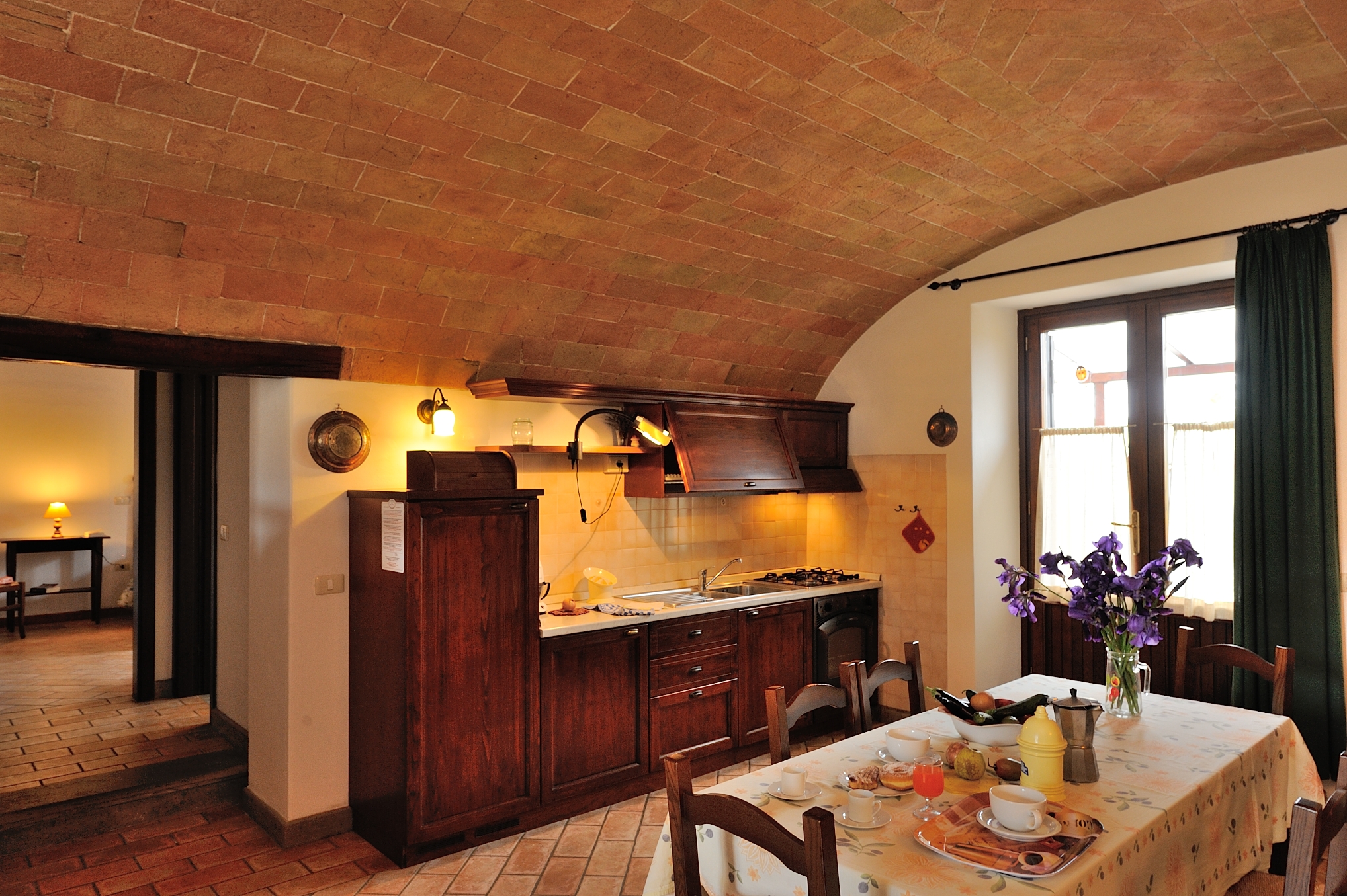Die Ferienwohnung Millefiori liegt im Erdgeschoss und hat sogar zwei separate Eingänge, im Norden und Süden! Außerdem erwarten Dich zwei Terrassen in dieser einzigartigen Ferienwohnung. Ursprünglich eine alte Stallung, zeichnet sie sich durch eine originale Gewölbedecke aus Terrakotta aus, deren Farben dich in vergangene Zeiten entführen werden. Ein Bereich dieses Raumes wurde als Schlafbereich mit einem Doppelbett eingerichtet, während der andere als Wohnküche dient. Die Ferienwohnung verfügt außerdem über ein weiteres Schlafzimmer mit Doppelbett und ein geräumiges Badezimmer mit Dusche.