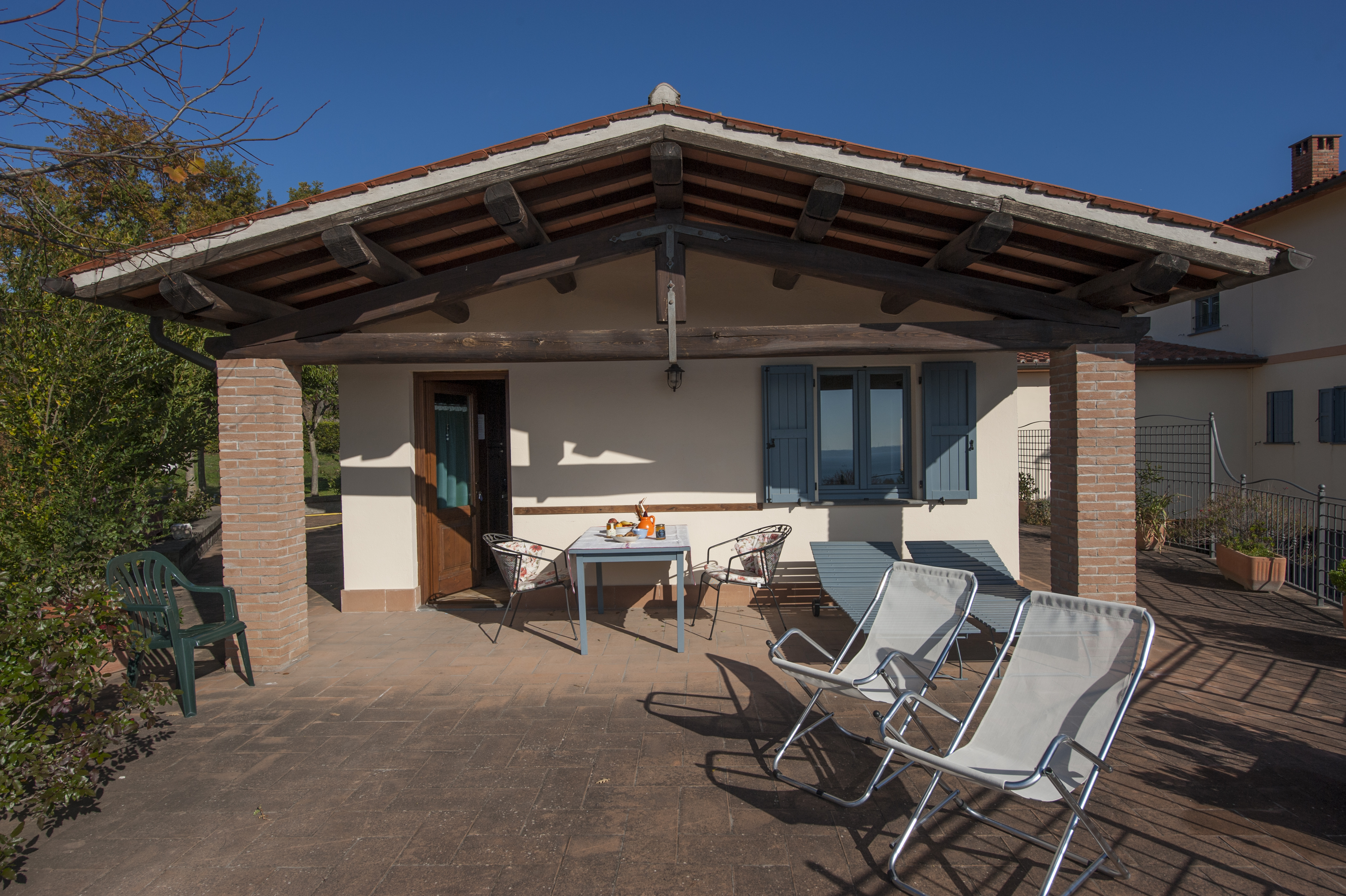 Dieses traumhafte Ferienhaus mit 2 Wohnungen liegt in einer erhöhten und äußerst panoramischen Lage am Bolsenasee, nur 400 Meter vom Ortszentrum und der berühmten Basilika von S. Cristina entfernt, der Kirche des Eucharistischen Wunders. Der private Strand befindet sich 2,5 Kilometer entfernt, in der Nähe eines dazugehörigen Agriturismo, und der öffentliche Strand ist nur 1000 Meter entfernt. Dies ist eine ausgezeichnete Wahl für diejenigen, die einen entspannten Urlaub auf dem Land suchen und gleichzeitig die einzigartige Aussicht auf den Bolsenasee und die grünen Hügel genießen möchten, die ihn umgeben. Das Ferienhaus besteht aus einer großen Wohnung im ersten Stock namens REGINA (86 qm) mit einer großen Terrasse mit Blick auf den See und einer anderen unabhängigen Wohneinheit namens L'ALVEARE (57 qm). Die Wohnungen in der Anlage sind liebevoll im Einklang mit der ländlichen Tradition eingerichtet.